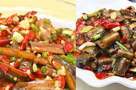做法:黄鳝鱼用盐洗干净。锅里面加入清水、绍兴酒、米醋、食用盐,烧开之后把整条的黄鳝鱼放进去,煮到黄鳝鱼的嘴张开就捞出来。然后用冷水冲干净黄鳝鱼,把黄鳝鱼肉片下来,留下鱼血。锅里面加油,烧热后放入葱姜蒜炒香。加入黄鳝鱼肉、鱼血、老生抽、食用盐、白砂糖、绍兴酒炒香炒后出锅。