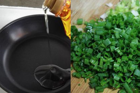 之后便将锅里水倒掉烧干后倒入少量植物油煎制。在煎油的间隙顺便将香葱切成丁状并且撒在碗里面条上。等油煎制好以后就倒入碗里,这时候葱在油的浇灌下就冒出香味来了,在这时搅拌一下面条,就完成汪涵做的那种葱油拌面啦!在制作时要注意油量和面条过水两个步骤哟!油量不宜太多,否则吃起来很容易油腻。