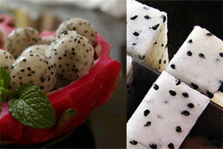 第三种做法是把火龙果切成两半,这次随意切开就可以了。然后用挖球器把火龙果的果肉都挖出来。火龙果的皮可以不用扔掉,可以直接用来做装火龙果肉球的容器。我给大家总结的方法就是这三种了,是不是非常的简单呢?【女物原创未经允许,谢绝转载!】