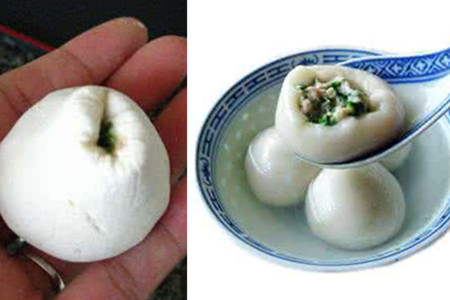 7、在煮锅中重新倒入干净的清水,水烧开后。把荠菜团放入,轻轻地搅拌防止粘锅。待荠菜团子浮出水面,就可以捞出食用了。