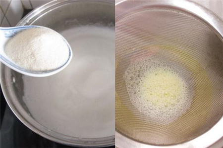 第五步:准备好筛子和较大的容器,把刚才的混合液过一遍筛。