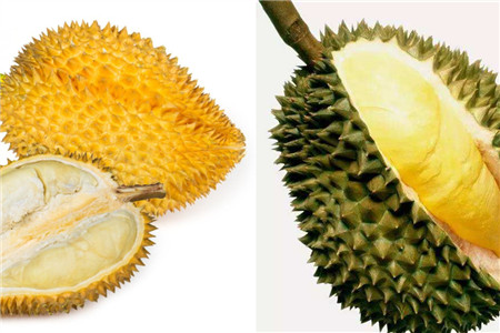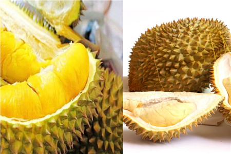 要是没有裂纹的榴莲,挑选的时候看颜色,深黄色的比绿色的好,还可以闻味道,成熟的香味浓,开的时候就比较麻烦,简单的可以在地上甩,力气不要太大,轻甩几下出现裂纹就可以按照上面的方法打开。