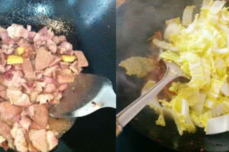 5、利用锅中剩余的油,油温稍微加热后,下入蒜末、生姜末进行翻炒爆香。倒入娃娃菜进行煸炒,炒制娃娃菜变软。撒上些盐、鸡精调味,这时候再下入之前炒制好的肉片,进行均匀地煸炒,撒些水淀粉即可以装盘食用。【女物原创未经允许,谢绝转载!】