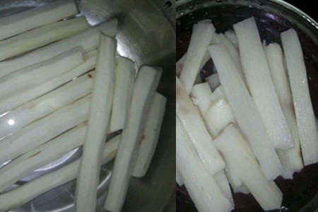 接下来,我们需要将它去皮,然后将它放入蒸锅蒸熟。在这里我们需要注意的是,因为我们在给它去皮的时候可能会将山药汁溅到自己的手上,这样会出现手痒的情况。因此,我们在处理的时候一定要注意。然后,我们需要将它取出来放入容器之中,同时再将它做成泥。