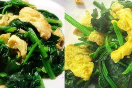 炒鸡蛋的时候不能炒的时间太长了,因为时间炒长了就会炒的很老吃起来就不嫩滑,所以鸡蛋一旦凝固就马上盛出来,这样炒出来的鸡蛋才会更加的嫩滑,口感才好。接着锅里再加入油,油烧热之后加入姜末和蒜末爆香,爆香了之后加入波菜翻炒两分钟,菠菜的时间也不用炒的时间太长,因为我们刚刚焯过水已经差不多熟了。