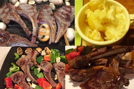 所需食材:小羊排两百克,土豆一只,青椒一只,红椒一只,白蘑菇四只,洋葱半个。海盐、黑胡椒、黄油、牛排汁、姜、蒜、孜然粉适量。