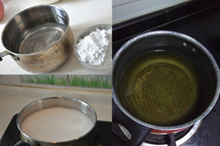 二、做法步骤:1、准备好土豆粉与水,比例要精准一点。把土豆粉倒入水中,不断搅拌到完全溶解没有颗粒为止。