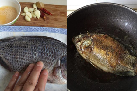 罗非鱼去掉内脏,刮掉鱼鳞,用清水洗干净,滤干水分,再把鱼身上抹上鸡蛋液。煎锅预热,放入罗非鱼煎制。