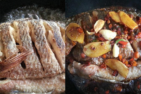 给罗非鱼打花刀的时候,不要切的太深,以免煎炸的时候鱼肉散掉。泡椒和豆瓣酱本身很咸,所以往鱼身上抹盐要掌握好量,不然会太咸。