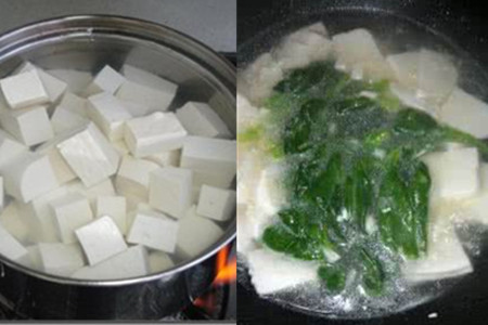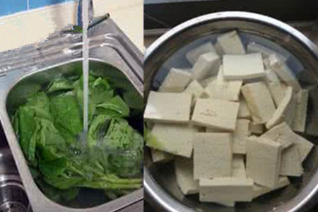 1、先择去木耳菜的根蒂,把它泡在淡盐水中浸泡半个钟头左右。把木耳菜清洗干净,放在一旁备用。将葱切成葱花状,把买回来的嫩豆腐事先放在盐水中泡五分钟上下,这样可以去除豆腥味。豆腐泡好后,把它用刀切成薄片。