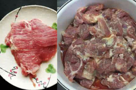 1、将买回来的新鲜的里脊肉放在水龙头下,清洗干净外表的血水。把洗好的里脊肉用刀切成薄片,放入一个碗中。在其中加入料酒和盐进行揉搓,放在一旁腌制十几分钟。如果家里有老人和小孩,比较喜欢吃嫩滑的里脊肉,不妨往肉片里加些面粉,让它的口感更加嫩爽。