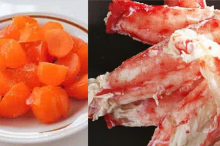 2、将帝王蟹清洗干净,把里面的蟹肉取出,放在一旁备用。把胡萝卜削皮,洗净后切成大小适当的丁状。将葱煎去根部,择净旧叶和黄叶,切成葱花状。在蒸锅中倒入适量的水,把咸鸭蛋放在其中。煮熟后剥壳,把里面的咸蛋黄取出,用勺子把咸蛋黄捣碎。
