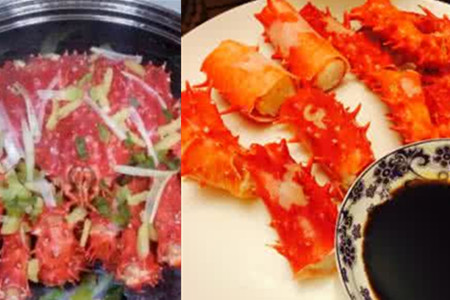 采用蒸的烹饪方式,可以尽可能地保留了帝王蟹的原汁原味。而且这道菜味道鲜淡,特别适合老人和小孩食用。