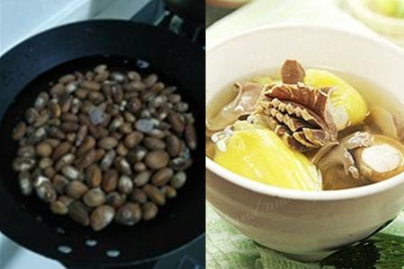 2、煲汤。用菠萝蜜核煲汤非常地简单,它经常同鲫鱼、猪肉一起煲汤食用。同样是将核洗净,剥去淡色的薄膜。在煲汤的时候,只要放入其中即可。菠萝蜜核煲出的汤,喝起来鲜美可口,且把它的营养都溶解在汤汁中了。