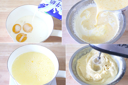 步骤:1、把鸡蛋磕出来,用蛋清分离器把蛋黄分离出来,放在小奶锅里,加入牛奶、盐、细砂糖一起搅拌均匀。