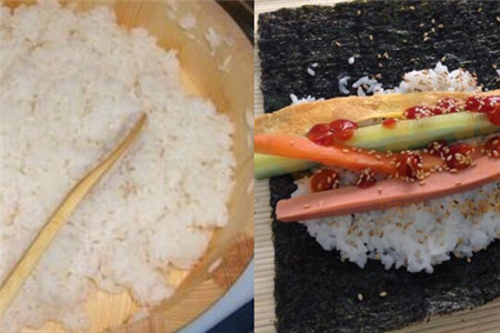 如果是喜欢吃培根,可以先将培根烤熟之后再放入寿司饭里面,如果是放了培根的寿司饭,可以在里面放入少量的肉松,这样混合起来还是非常好吃的。其实我们也没有必要根据食谱上面的方法来做寿司饭,只要自己喜欢的食物,其实都可以或多或少的放在里面。