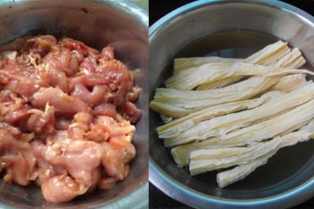 3、腐竹要事先浸泡在水中,时间大概要两到三个钟头。如果腐竹没有事先用水浸泡,那么炒出来的腐竹会很硬,影响口感。