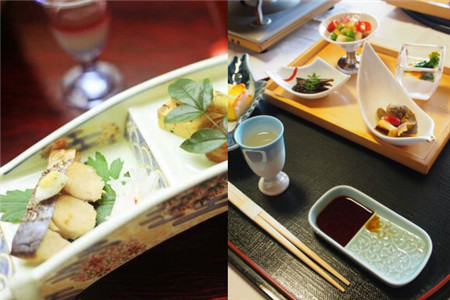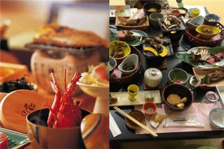 会席料理和中国的酒席有着相似之处,在食用饮食的中途,会穿插着各种美酒,客人们可以尽情畅聊与畅饮。会席料理就没有怀石料理那么讲究,它更加注重在饮食当中所体验到的快乐与享受。会席料理就不存在三菜一汤的”小气”,它拥有各种不同的菜色,客人可以自行选择自己喜欢的食物,并且在会席料理当中,酒具是一个特色。