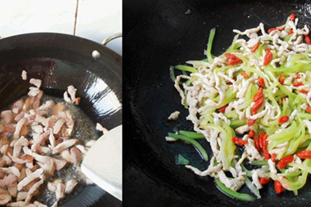 今天小编要教大家做的是莴笋炒肉丝,喜欢吃莴笋的朋友们可以一起来看看哦!首先我们需要准备的原材料有莴笋、猪瘦肉、干辣椒、生姜、大蒜、葱、油、鸡精、酱油、盐、淀粉。接下来将莴笋去掉皮洗干净,切成丝备用。(如果想要炒出来的莴笋脆嫩可以先用盐腌制一会儿,然后挤掉水分备用,这样炒出来的莴笋,口感才好,而且颜色也是翠绿色的。)