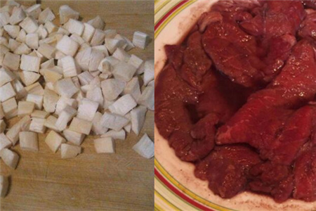 材料:杏鲍菇200克,牛肉200克。
