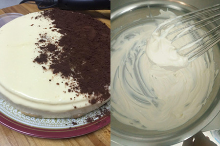 等糖完全融化之后,冷却一会就加入鸡蛋黄。芝士要放在锅里和鸡蛋黄液一起搅拌均匀,然后把融化后的吉利丁溶液加到芝士里一起搅拌。搅拌均匀后就可以将动物淡奶油打发,记住淡奶油打发之后不要太用力去搅拌,不让会影响奶油的质量。
