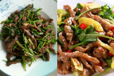 香菜搭配牛肉就可以组成一道硬菜。将牛肉切成丝,在牛肉丝中加入盐、生抽、料酒以及白胡椒粉腌制片刻。在腌制牛肉丝的同时把香菜清净,可以根据个人喜好来取香菜的分量。将洗净的香菜成段备用。在锅内倒入适量的油,待锅烧热之后,将牛肉丝倒入锅内,翻炒到牛肉变色为止。在锅中加入葱姜去腥,翻炒片刻之后将腌制牛肉的酱汁一起倒进锅内。适当翻炒之后倒入香菜,等香菜变软之后就可以起锅了。