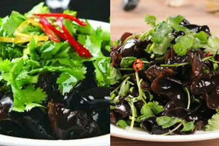 香菜拌木耳也是十分清爽的菜式。提前大概半天的时间用冷水将木耳泡发,之后洗净。接下来处理洋葱。将洋葱去皮后切成片。在锅内装水,待水烧开之后将事先准备好的木耳倒入锅内,木耳煮熟之后立刻泡进冷水中,增加口感。片刻之后把木耳的根蒂去掉,挤干其中的水份。把处理好的洋葱和木耳放进碗中,加入洗净的香菜,用酱油、醋、盐、糖和香油调味,一起拌匀后撒适量芝麻即可。