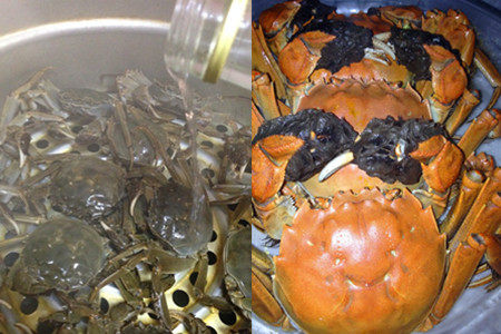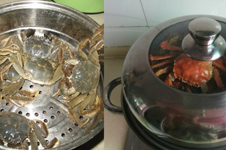 第三步,在锅中倒入三分之一左右的清水,然后把洗好的蟹放在蒸笼的里面,开大一点的火把锅里的清水煮开之后再继续煮十分钟左右。