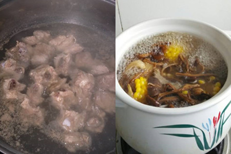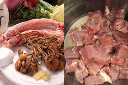 茶树菇炖排骨做法很简单,需要的原材料有茶树菇、猪排骨;配料红枣、枸杞;调料香油、醋和盐。准备好这些材料之后,将茶树菇洗干净,排骨倒入锅中煮上一会儿,将排水的血水去掉。