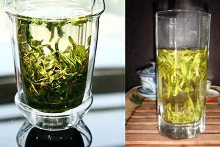 技巧一:一般的冲泡工具主要采用白瓷或者玻璃杯来炮制。古人为了让茶香环绕与杯中,不至于消散掉,因此都会使用有盖罩的陶瓷用具。而如果没有太多的时间和经验,可以将茶叶放置于玻璃杯中浸泡,随着水流上下浮动,变化姿态的绿色嫩芽,从外部看起来就像雨后春笋一般晶莹剔透,文艺雅致。