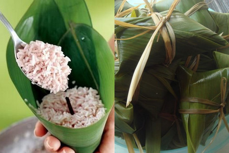 当材料准备好了之后,我们先将调制好和糯米混合的粽子馅泡一泡,兰竹叶一般先在开水里煮一下,不过新鲜的也是可以的。接着我们就可以包粽子了,首先将兰竹叶中间对折裹成漏斗状,然后将馅舀进竹叶中,不要装的得太满,不然当粽子蒸熟的时候外面的竹叶就会胀破了。随后我们就需要用绳子将包好的粽子缠住,当然也可以使用稻草之类的植物来缠!