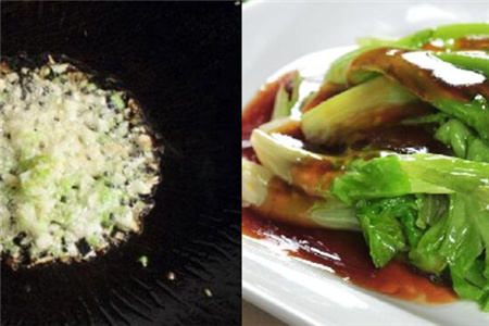 有的朋友为了追求摆盘好看的话,可以直接将调味汁淋在生菜上也是可以的(生菜已经提前在水中煮熟),这样做法的生菜颜色更加的碧绿摆盘美观,缺点是没有翻炒版的入味。