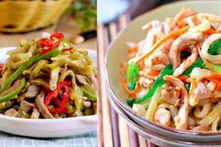首先小编要给大家介绍的是榨菜炒肉丝的做法。我们需要准备的原材料有榨菜、(榨菜可以去买袋装的,因为袋装的用起来方便而且口感也是特别的脆嫩。)猪里脊肉、葱、蒜、生姜、新鲜的红辣椒、油、盐、生抽、鸡精、淀粉。我们首先要将榨菜放进开水锅里焯三十秒,因为榨菜本身比较咸,如果焯一下的话可以去掉一些盐分,吃起来就不会觉得咸。