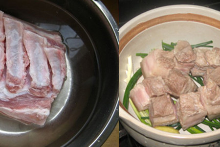 第二步,在锅里倒入半锅清水,把已经清洗干净的肉放进去煮开,然后捞出晾凉。