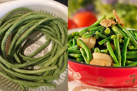 等到锅中的水快要烧完时,就可以放入豇豆煸炒,这个时候炒豇豆是为了让豇豆也可以很好地入味,将豇豆简单翻炒后,加入适量的水,水刚刚没过豇豆就可以了,然后开大火,直到锅里的水沸腾后,改为小火慢慢的焖。