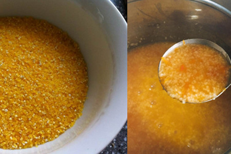 首先,我们需要将它去皮洗干净,然后再将它切成块状备用,接下来我们可以将切好的块放在蒸锅上蒸熟,再将它做成泥,或者是直接放入容器中将它榨成泥。我们也可以在里面适量的加入一些冰糖,这样可以让它的味道更好。之后,我们需要准备一些小米,同时再用清水将它洗干净。接着,我们需要将它倒入锅中,在锅里面加入适量的水并开始熬煮。