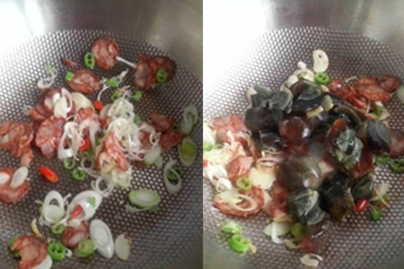 小贴士:炒这道菜品的时候,不需要再另外加盐或酱油调味,因为腊肉和皮蛋本身就有咸味的。【女物原创未经允许,谢绝转载!】