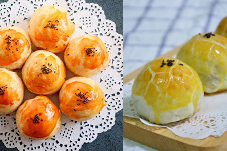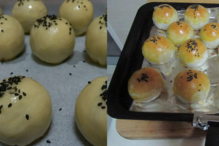 之后,我们需要把它放在一个容器中,然后再次用保鲜膜将它们覆盖好,静置15分钟左右。接下来,我们就可以将事先准备好的豆沙和蛋黄包入面皮中,然后在上面涂抹上一层蛋液,并撒上一些芝麻,再放入烤箱中烤制。【女物原创未经允许,谢绝转载!】