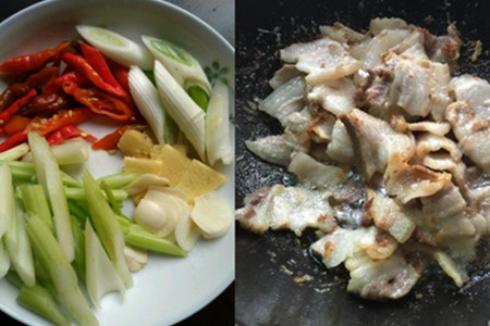 首先小编就来介绍川菜具有代表的菜肴——回锅肉。我们需要准备的原材料有、五花肉、蒜苗、盐、郫县豆瓣酱、豆豉、白糖、鸡精、大蒜、生姜、生抽。首先我们要将猪肉清洗干净,然后放进锅里煮到六七分熟,然后将肉切成薄薄的片备用。蒜苗切成三四厘米长的段备用,生姜和大蒜都切成末备用,郫县豆瓣酱我们用刀剁细备用。