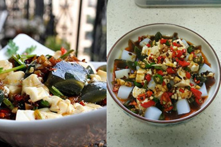 皮蛋豆腐除了以上这种做法以外还有一种做法,就是将皮蛋切成瓣儿放在盘子中,将豆腐切碎了放在盘子中间,用生姜、大蒜、干辣椒、香葱和喜好的酱料调制成汤汁浇淋在盘子中,这种皮蛋豆腐做出来更为美观,适合有客人在家来吃饭的时候制作,但是这种皮蛋豆腐做出来以后不是很入味,吃起来也不够爽。