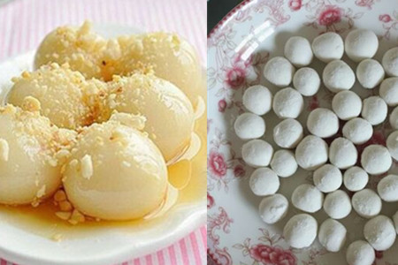 做法:大碗里面加入有机糯米粉和清水。和成团后搓成小圆团。新鲜花生放进智能微波炉叮3分钟,白芝麻粒放进去叮1分钟。叮过的花生去掉皮后个白芝麻粒一起捣碎。锅里面加入清水,煮沸腾后把糯米小团放进去煮饭浮起来后捞起。