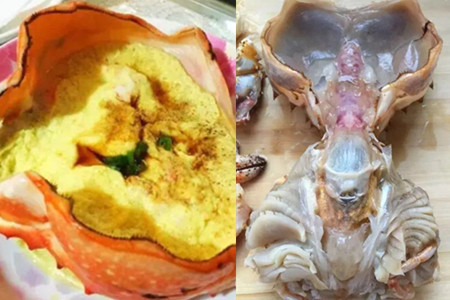 帝王蟹壳蒸蛋准备材料:帝王蟹壳、土家鸡蛋、食用盐