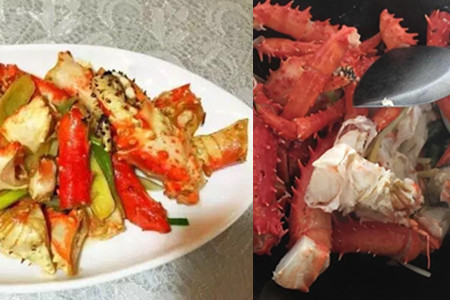 做法:熟冻帝王蟹去掉蟹身上的刺,切下帝王蟹腿,揭开蟹壳后留下蟹身。去除鳃心胃肠,把熟冻帝王蟹切成块。加入食盐、料酒腌15分钟。锅里面加入油,烧热后把腌好的帝王蟹块放进去炸一下后出锅。
