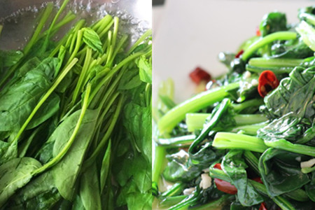 菠菜是一种常见又受欢迎的一种蔬菜,它营养丰富、口感爽脆,制作起来很简单。素炒的菠菜就能非常下饭了,在炒制菠菜之前,需要将菠菜用水焯一下。这样做是为了破坏菠菜中不被人体吸收的物质。然后将蒜子放在油锅中翻炒,有香味飘出的时候就可以将菠菜放进去了。翻炒几下之后,加入咸盐调味。在五分钟内,就能吃到好吃的清炒菠菜了!