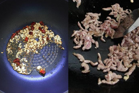 这里需要注意,肉末在炒之前不加任何调料,在这道菜中肉末只是点缀在其中的佐料,就需要稍微老一点的口感,所以剁碎的肉末切记不能腌制更不能加入淀粉和蛋液之类的东西致使肉末没有嚼劲,这道菜的口感会跟着大打折扣。