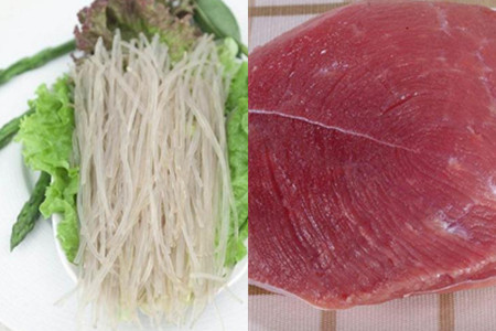 第一步,准备食材。制作蚂蚁上树前准备好红薯粉丝、瘦肉、青椒、豆瓣酱、生姜、大蒜、猪油、骨头汤、香葱、酱油、香醋、食盐和胡椒粉。红薯粉选择质地硬有韧性的,好的红薯粉色泽均匀,颜色是淡黑色半透明。瘦肉尽量选择瘦一些的精瘦肉,肉要新鲜带着肉的腥香味,没有腐烂气味,用手按压一下肉质有弹性并没有血水残留。