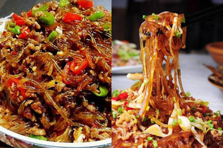 这道蚂蚁上树口味是偏重于酸辣的,所以再制作的过程中可以适当多加一些香醋,焖的时候加入一些新鲜的爆辣朝天椒。如果没有新鲜的辣椒可用,可以用干辣椒先炸出辣椒油,取辣椒油加入口感也是一样的香辣,切记不可将干辣椒切碎了放入,到时候吃到一口的辣椒渣滓就很不好了。