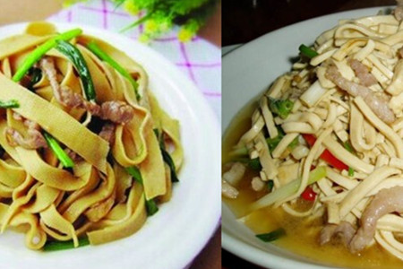 接下来小编再来介绍韭菜炒豆腐皮的做法。首先我们需要准备的原材料有新鲜的豆腐皮、韭菜、葱、姜、蒜、干辣椒、胡椒粉、花椒粉、鸡精、盐、油。豆腐皮洗干净之后切成丝备用。韭菜洗干净之后切成丝备用。葱切成段,姜切成丝,蒜切成片,干辣椒切成段备用。