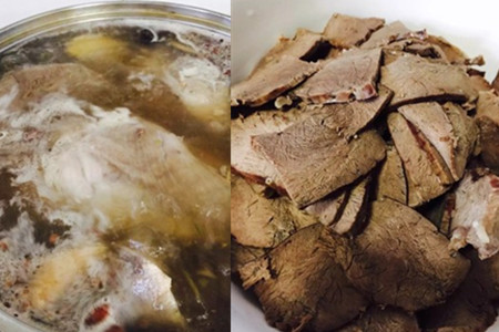 二、将牛杂处理干净,牛心需要切开洗干净,洗净里面的血水;牛舌要刮干净表面的疙瘩与杂质。家庭制作卤味讲究的就是卫生,牛杂的处理很耗费时间,不要怕麻烦。