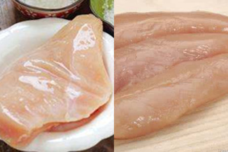 第二步:将鸡胸肉清洗干净,然后切成均匀大小的三小块,在肉块的中间开一个口。